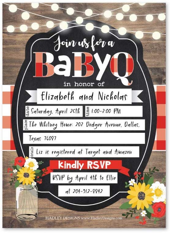 25 Babyq Baby Shower Invitations Sprinkle Invite For Boy Or Girl Coed Rustic Barbeque Gender Neutral Reveal Theme Cute Fill Or Write In Blank Printable Card Country Sunflower Party Diy Supplies